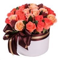 You’ll be gently surprised with the charms of the bouquet. It’s a combination of amazing yellow ñhamomiled ñhrysanthemum, refined snowy eustoma, noble orange rose and harmonic green. The dizzy combination of flowers is complemented with unusual elements — decorative Easter eggs.
